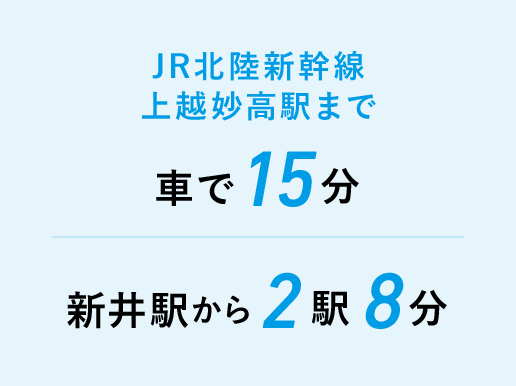 新井工場は、新潟県の南西部、妙高市に立地しています。山までも、海までも、車で30分ほどの距離で、自然豊かな土地です。温泉もたくさんあります。日本海側の気候で、有数の豪雪地帯ですが、温暖化により雪が少なくなっていること、除雪がしっかりしていることから、生活に困るほどの雪ではありません。その雪は、地域の水源となり、おいしいお米が作られます。スキー場もたくさんあり、仕事帰りにスキーに行けるほどです。北陸新幹線が開通してからは、東京まで2時間でアクセスできることも魅力のひとつです。