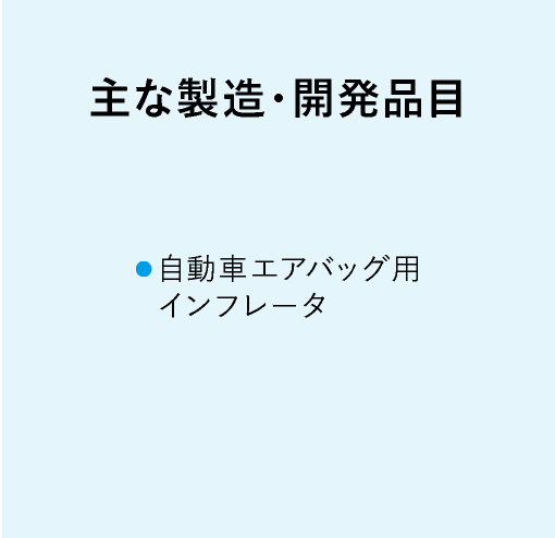 エアバッグ用インフレータを主に製造する播磨工場は、他のプラント型工場とは一味違い、製造設備が立ち並ぶ「組立加工型」の工場です。私たちの使命は、長年培ってきた技術で社会や人々の「安全」を守ること。インフレータ以外にも新製品の研究開発を行い、調達や生産計画など、様々な仕事があることも、この工場の魅力です。