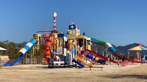 晴海公園には大型遊具を設置した広場やデイキャンプ場があり、家族や友人とBBQも楽しめる大人気スポットです。