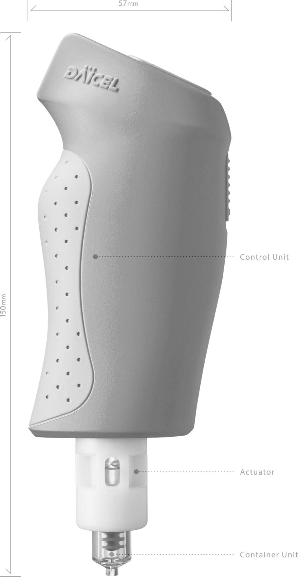 自動車のエアバッグやシートベルト、飛行機の脱出装置などを駆動させるエネルギーシステムとして世界中で安全・安心を支えているDAISI。誤作動が許されず、一瞬を争う過酷な緊急事態において、確実に、一度きり作動することで多くの人命を守ってきたワンタイムエナジーです。速度や圧力を精密にコントロールできるDAISIを投薬デバイスに転用することで、革新的な価値が生まれました。