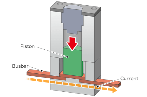2.The piston is pushed out by the generated gas, connecting the busbar to create a short-circuit.