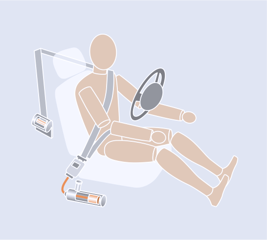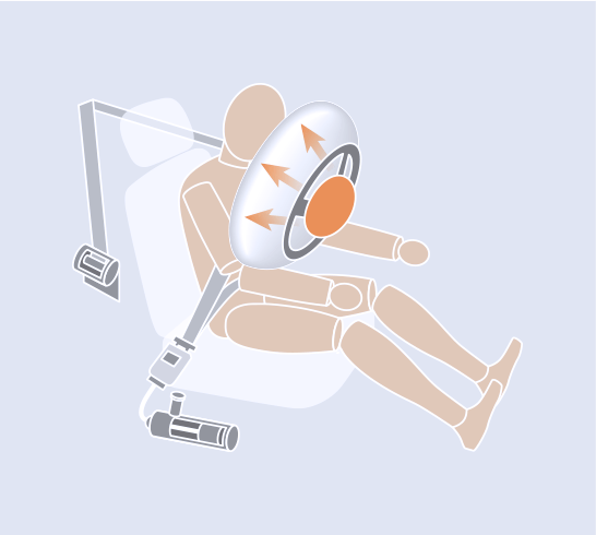 緊急時に安全かつ確実にガスを発生させ、そのガスの力によってシートベルトを引き込みます。