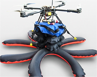 ドローンの墜落時に、穿孔器に作動信号を送って起動させることでガスカートリッジを開放し、エアバッグを膨張させることが可能です。これにより、墜落場所に及ぼす影響を緩和させたり、ドローンに搭載しているカメラなどを保護したりすることが可能です。また、河川や海へ墜落した時には、浮揚具としての効果も期待でき、ドローンの回収にも役立ちます。