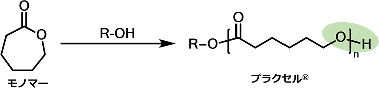 - ①ε-カプロラクトンの開環重合は設計の自由度が高く、非常に多くの製品をラインナップしています