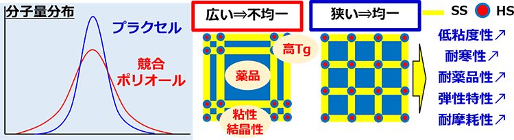 - ③ポリウレタン原料として、良好な温度特性と機械物性を発現します